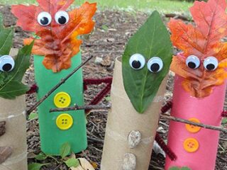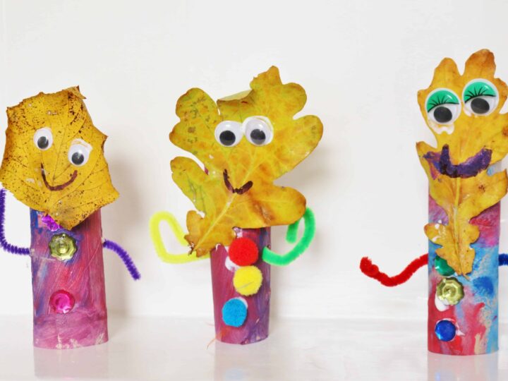 Get the kids together and head outside. Collect leaves to make finger puppets.