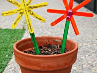 Whether your kids paint craft sticks or use colored sticks, little ones can make several popsicle stick flowers and put them in a vase or flower pot to display during the spring.
